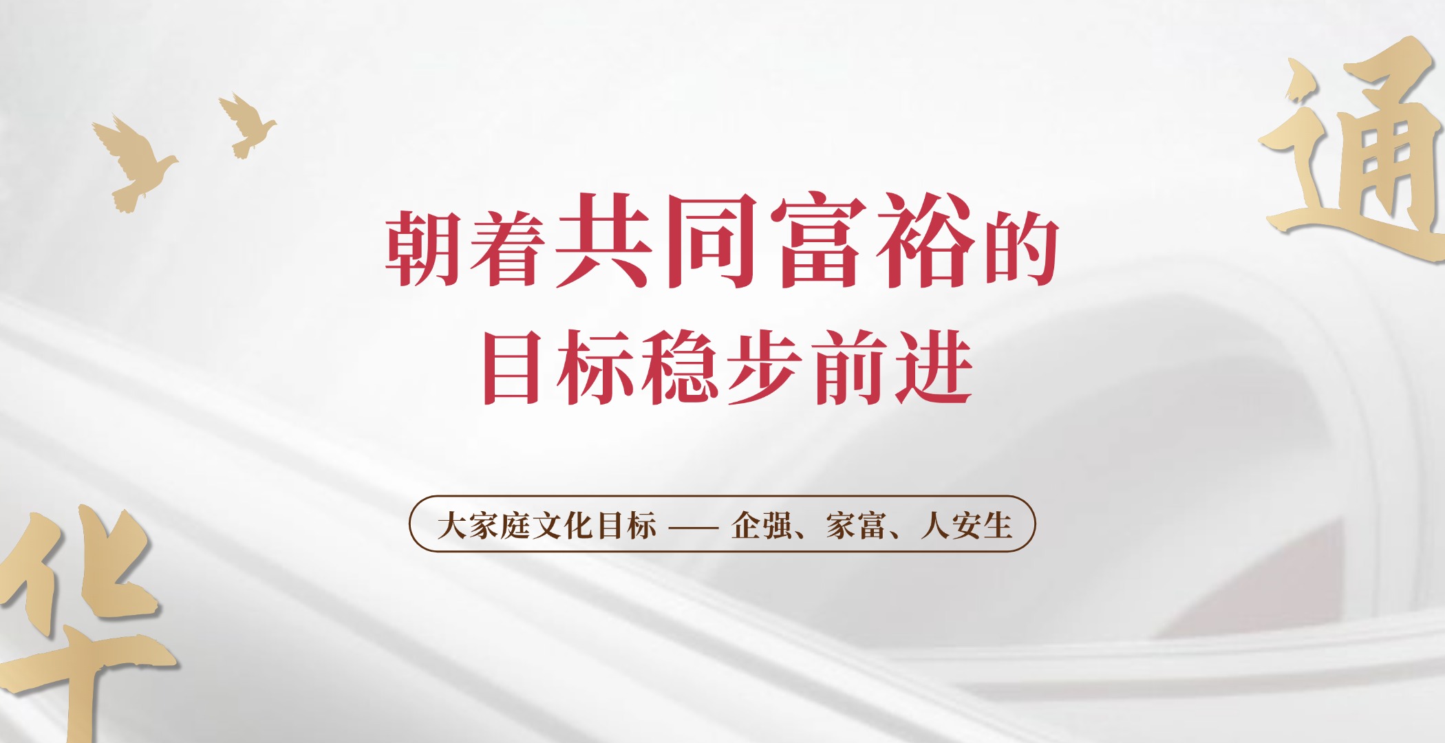 凝聚每一名员工对家庭的责任成为懂感恩、重情义、识兄弟的企业文化,用这种文化的力量温暖每个家庭的生活、投身我们共同的事业,构建企强、家富、人安生的事业命运利益共同体,为企业愿景的实现共同使命担当。